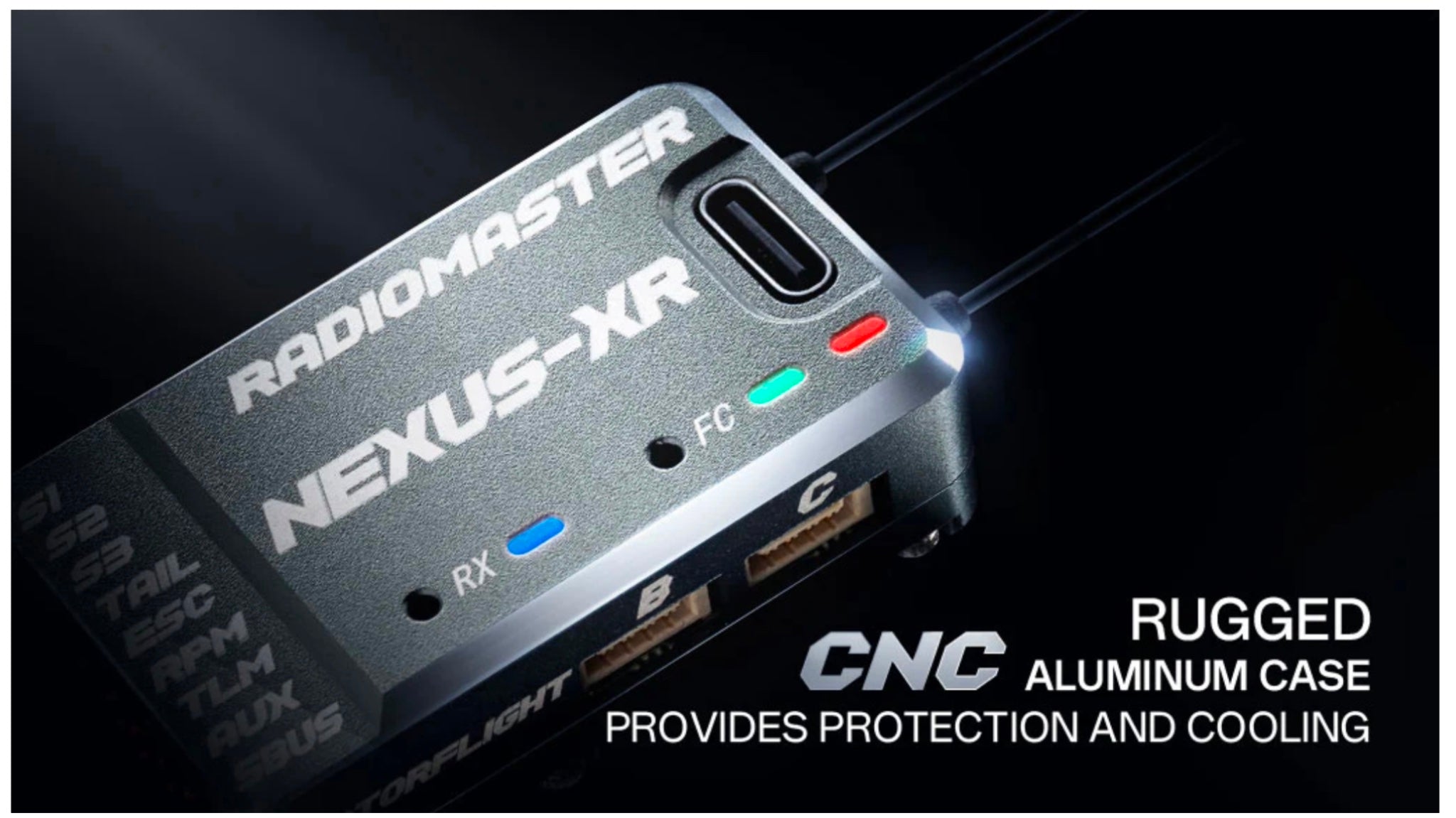 The Nexus-XR features several key upgrades. An improved BEC delivers more stable power to electronics, enhancing reliability, while the external voltage input now supports a range of 3.6V to 70V. Memory has been upgraded to 256MB, enabling longer flight logs. The CNC-machined aluminum case is sleeker yet still serves as a protective shield and heat sink, keeping the system cool during intense flights.