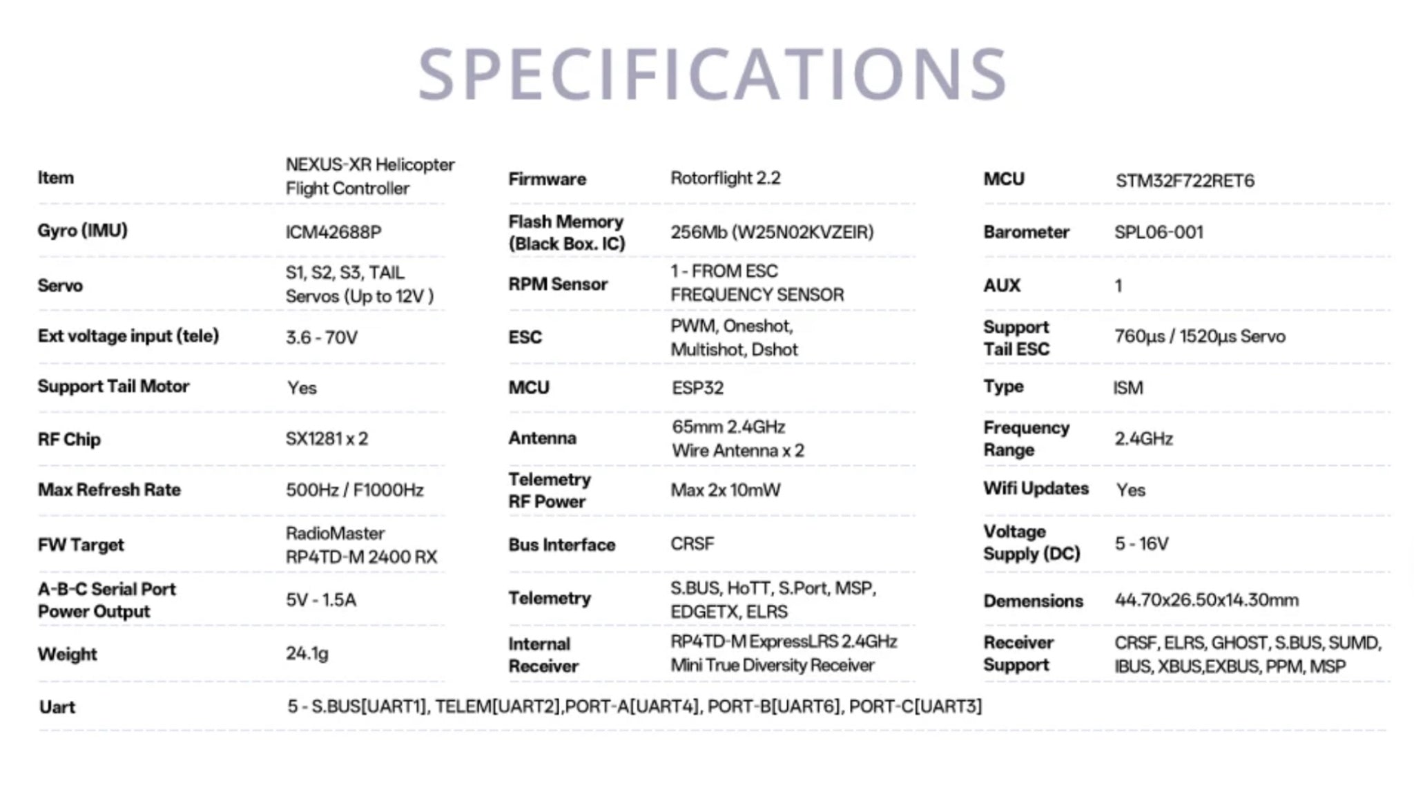 - Optimized for Rotorflight 2.2: Engineered for peak performance and compatibility.